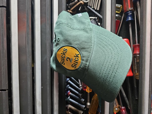 Fresh from Deadbeat Fest 2025. Our first (on purpose) color variation of our classic Sucks 2 Suck embroidery. Green and Yellow like your favorite sports team? Idk